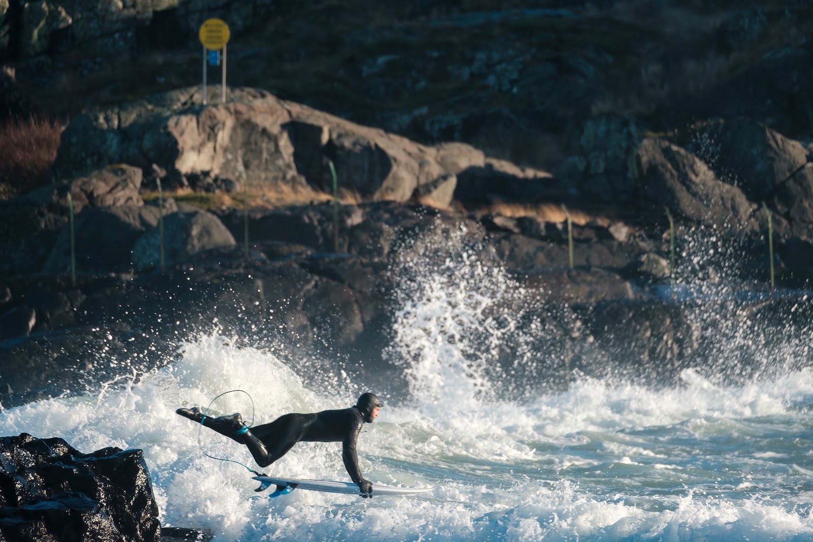 Om det ikke ble noen surfe bilder så iallfall noen bilder av folk på vei ut i vannet. Det var varierende lysforhold denne dagen, noe som ga ulik tone på bildene i denne serien fra Saltstein. |