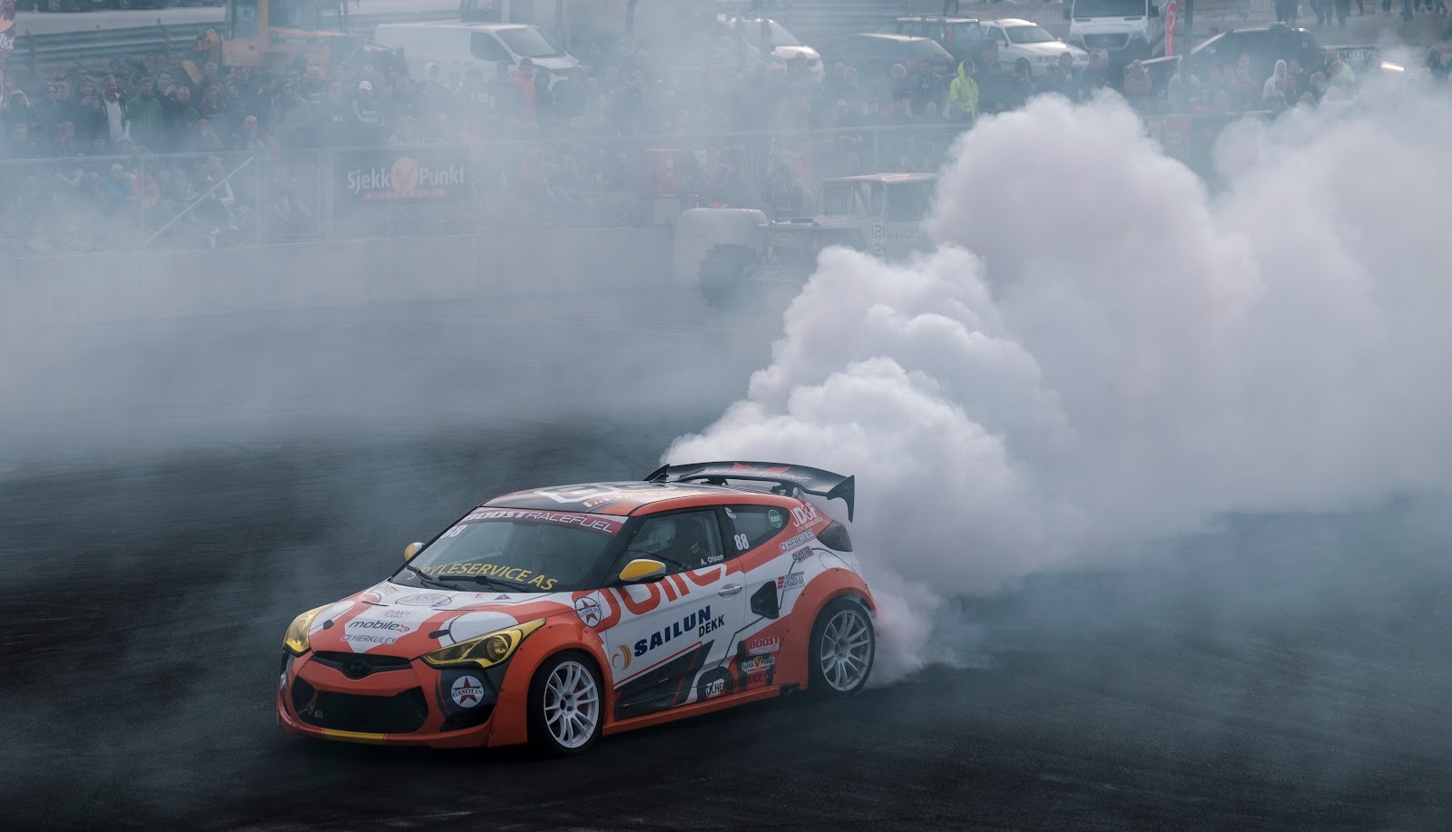 | Det ligger igjen en god del gummi på banen. |